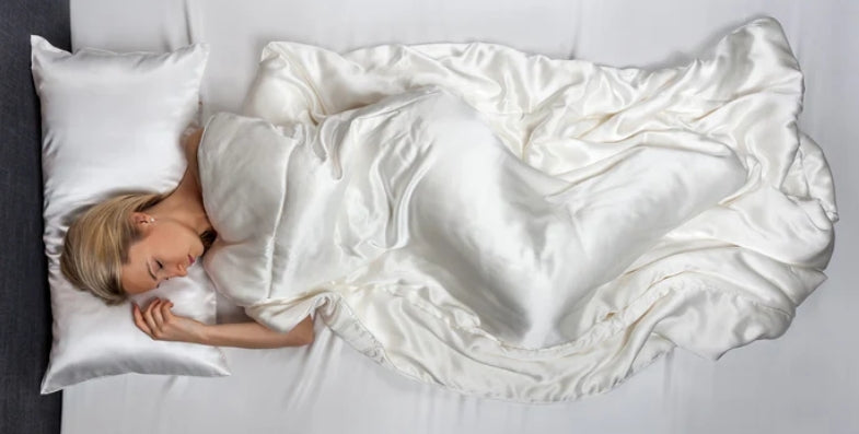 Eine Decke aus 100% Maulbeerseide heizt dich nicht auf! Sie reguliert deine Hauttemperatur, ist feuchtigkeitsregulierend und atmungsaktiv.